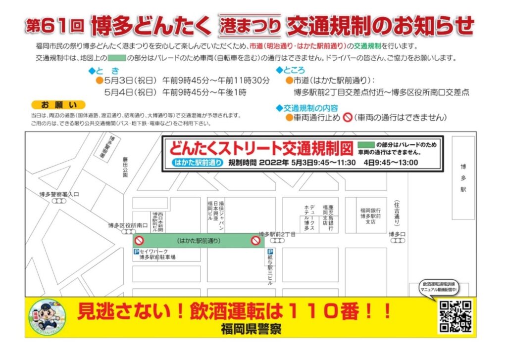 博多どんたく2022年の交通規制はいつからいつまで?ルートや時間帯のまとめ