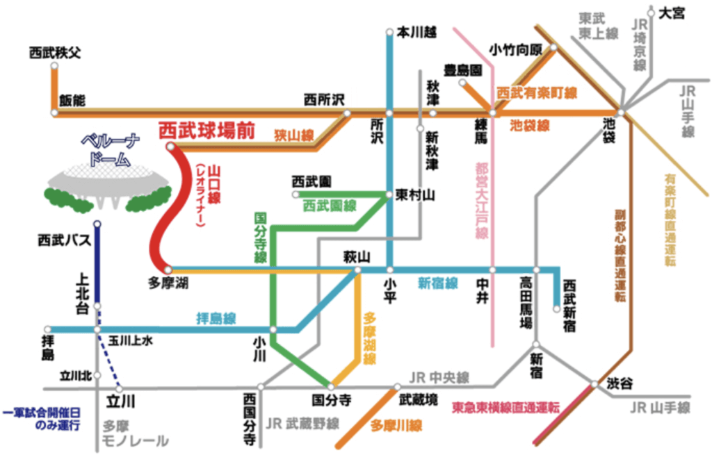 「西武球場前」を目的地にして、アクセス方法と所要時間をまとめました!