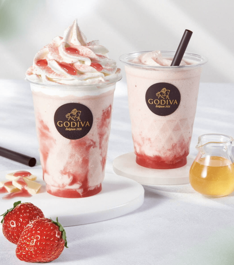 ゴディバのホワイトチョコレートと、全農の登録商標の「あまおう苺」が互いを引き立て合う爽やかなフローズンドリンクになりました!