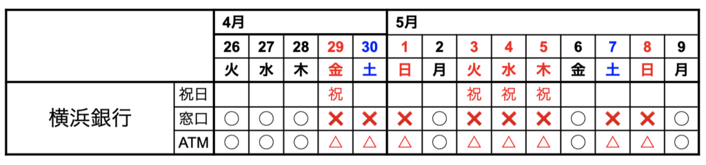 - 横浜銀行 2022年GWの窓口の営業時間
