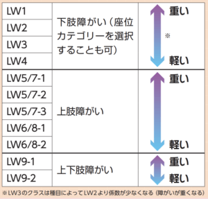 そして各種目、障害の程度に応じて3つのカテゴリーが設けられています。