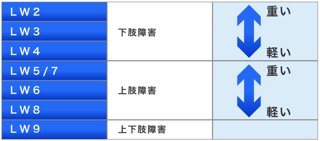 下肢に障害がある選手のカテゴリーになります。
