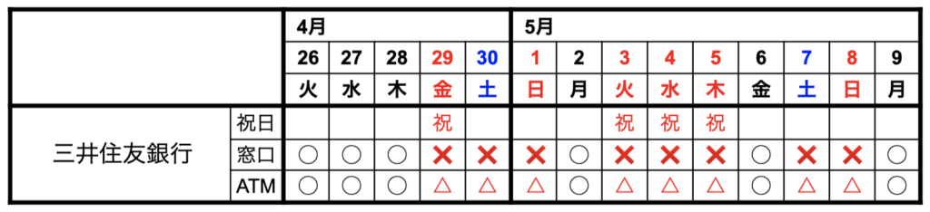 - 三井住友銀行 2022年GWの窓口の営業時間