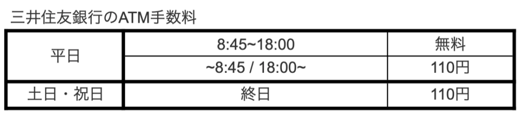 引き出す時の、三井住友銀行のATM手数料の一覧です!