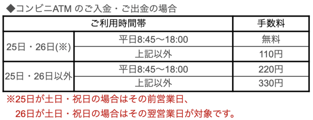 ① コンビニATMは平日でも手数料がかかる!