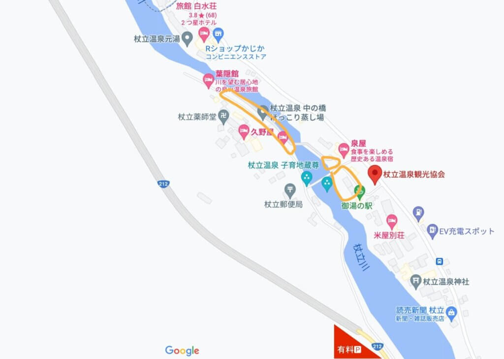 場所 小国町杖立温泉(熊本県阿蘇郡小国町下城杖立)